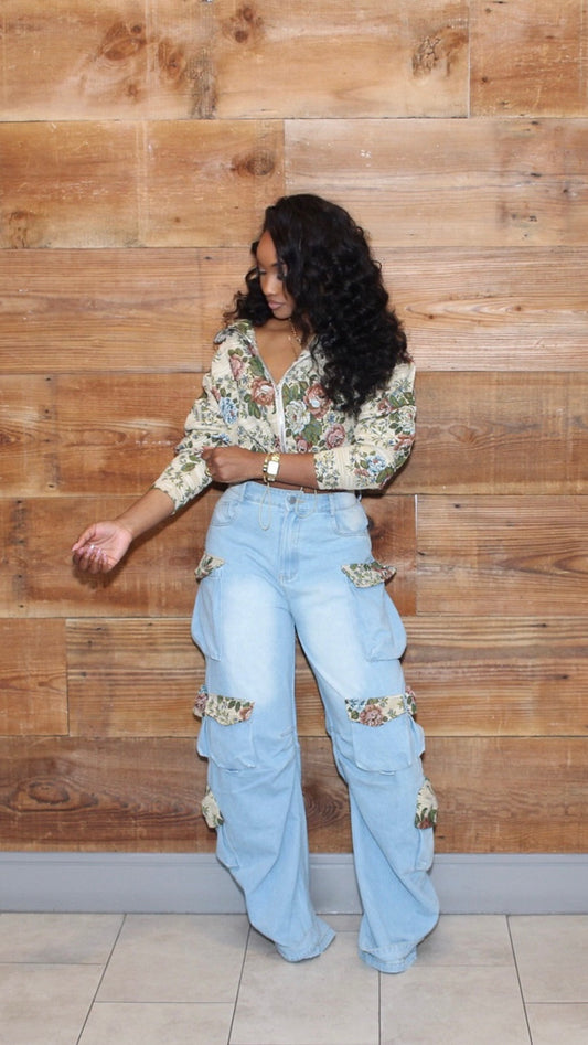 Sold outFloral Cargo Denim Set